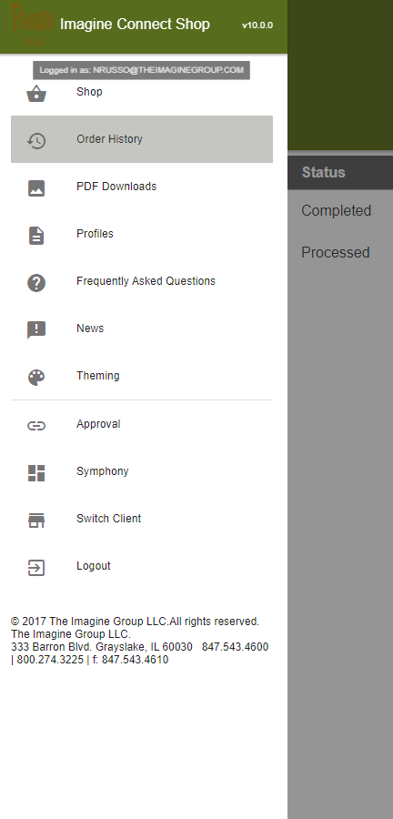 1.) Click on the menu (circle with 3 lines) on the top, left of the SHOP page and select Order History. (See image below for reference)